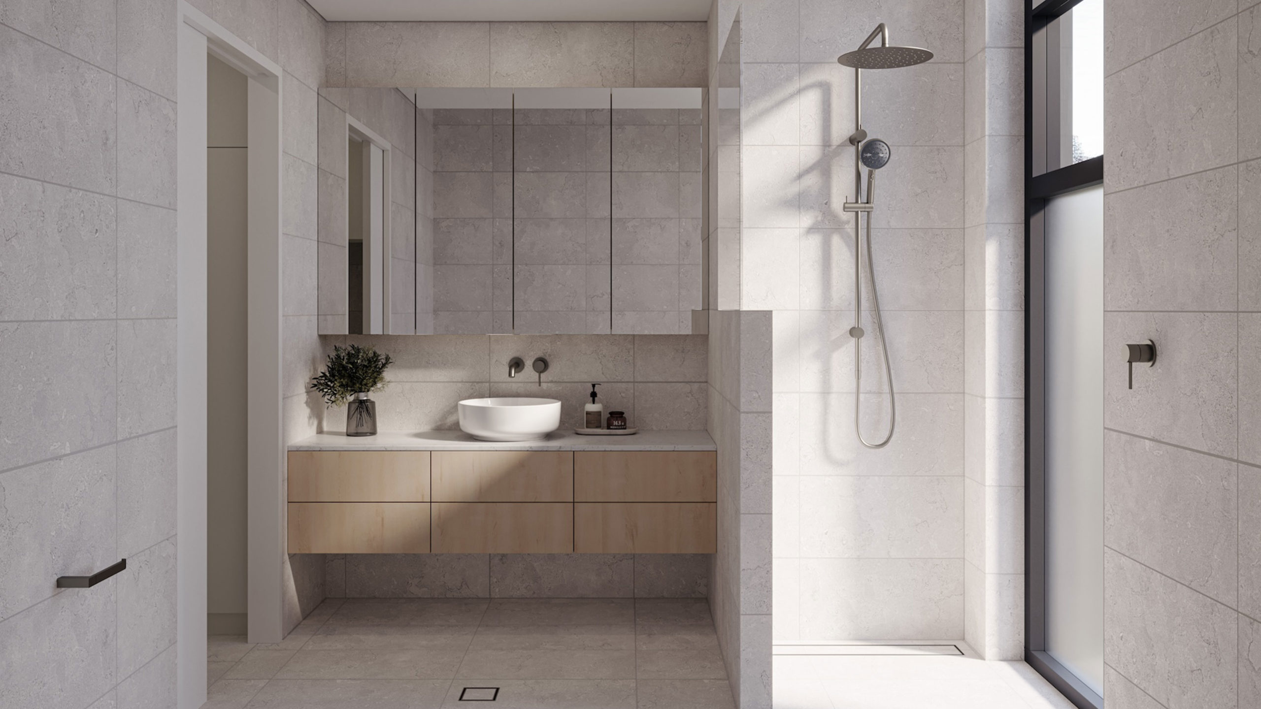 Elegant and soothing with a colour palette consisting of cool beiges and natural tones. The living areas feature luxurious organic vein quartz benchtops, light Nordic Oak cabinetry and classy Barcelona Oak timber flooring.